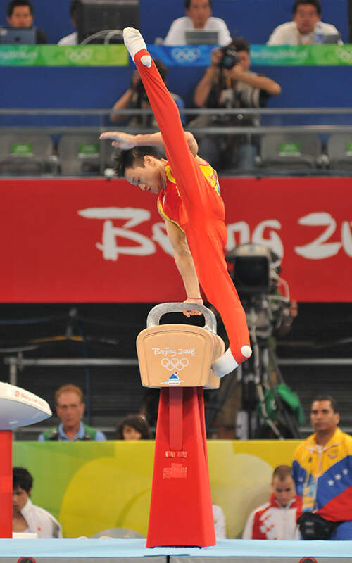 李小鹏在泰山器材上夺得男子体操双杠冠军